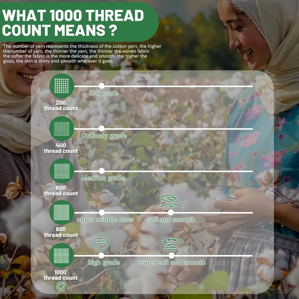 - Soft & Breathable: Lightweight, cool, and comfortable for all seasons. The 1000 thread count weave offers a crisp yet cozy touch, helping you sleep soundly through the night.