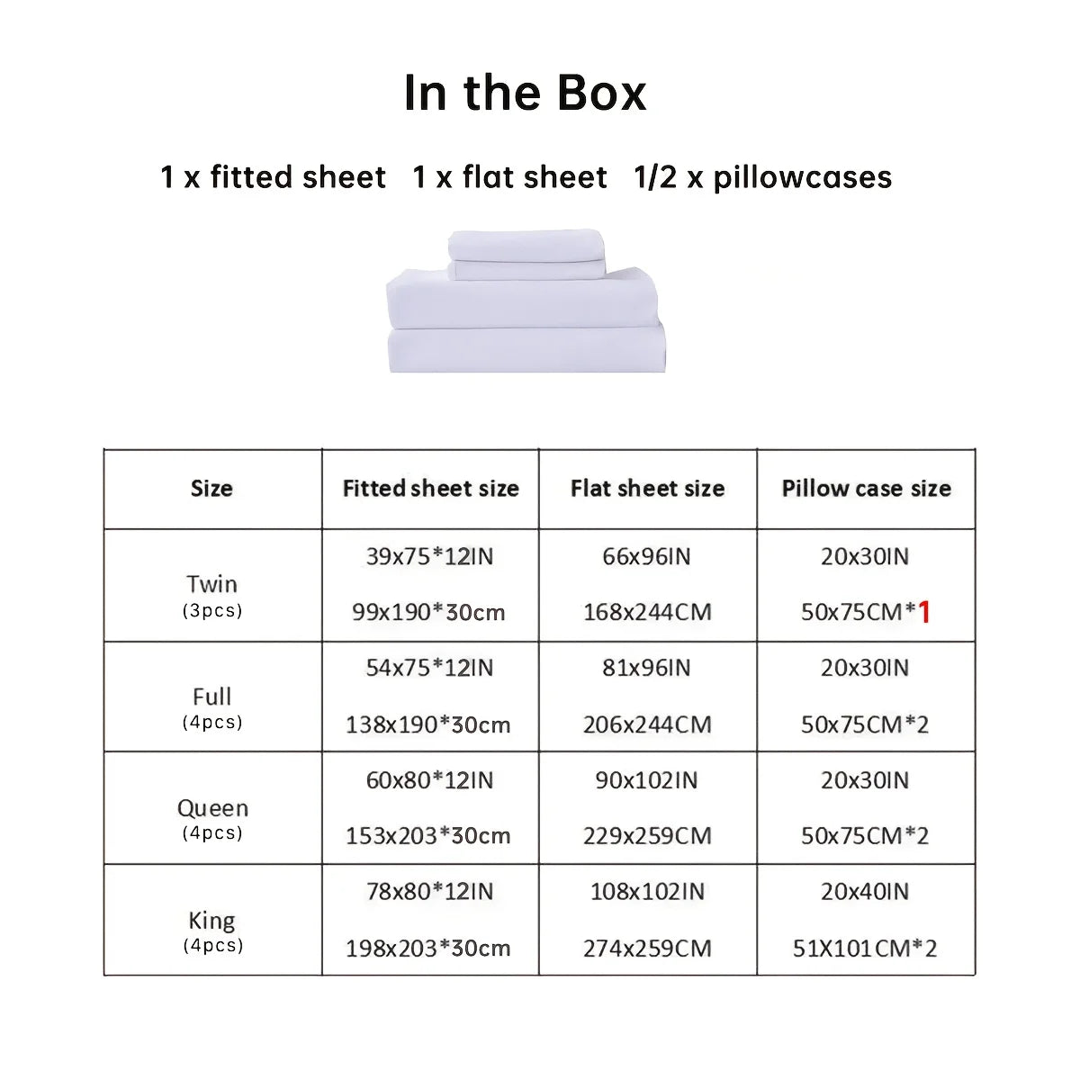 - Set Includes: 3-piece set (twin size) or 4-piece set (full, queen, king sizes) – 1 waterproof fitted sheet, 1 flat sheet, 2 pillowcases