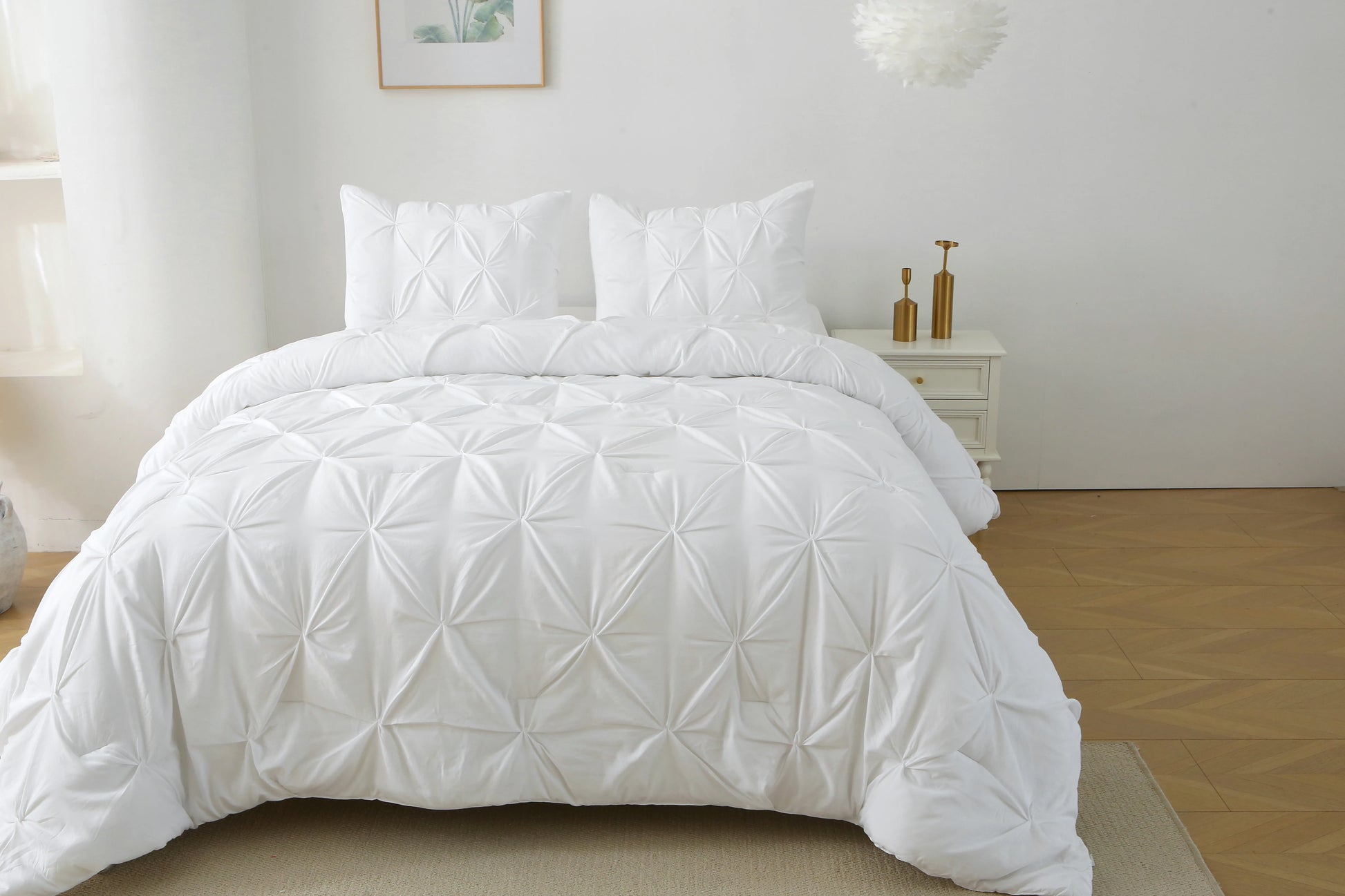Refresh your bedroom with this cozy pintuck comforter set, designed to bring soft comfort and a clean, stylish look to your space. The smooth fabric, light fill, and classic pinch-pleat texture make it an easy upgrade for year-round comfort.