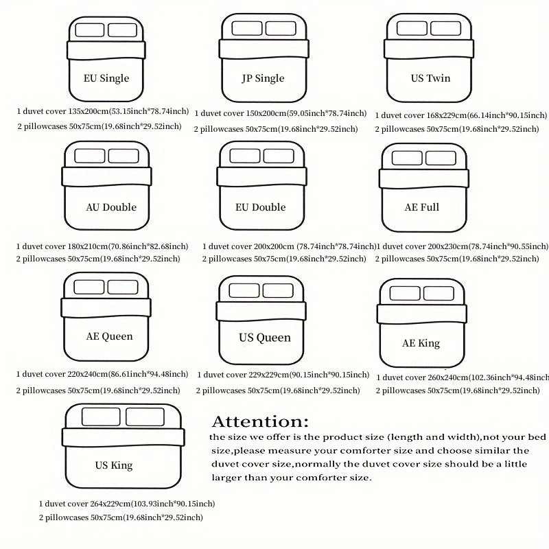 (All include 2 pillowcases: 50×75 cm each.)