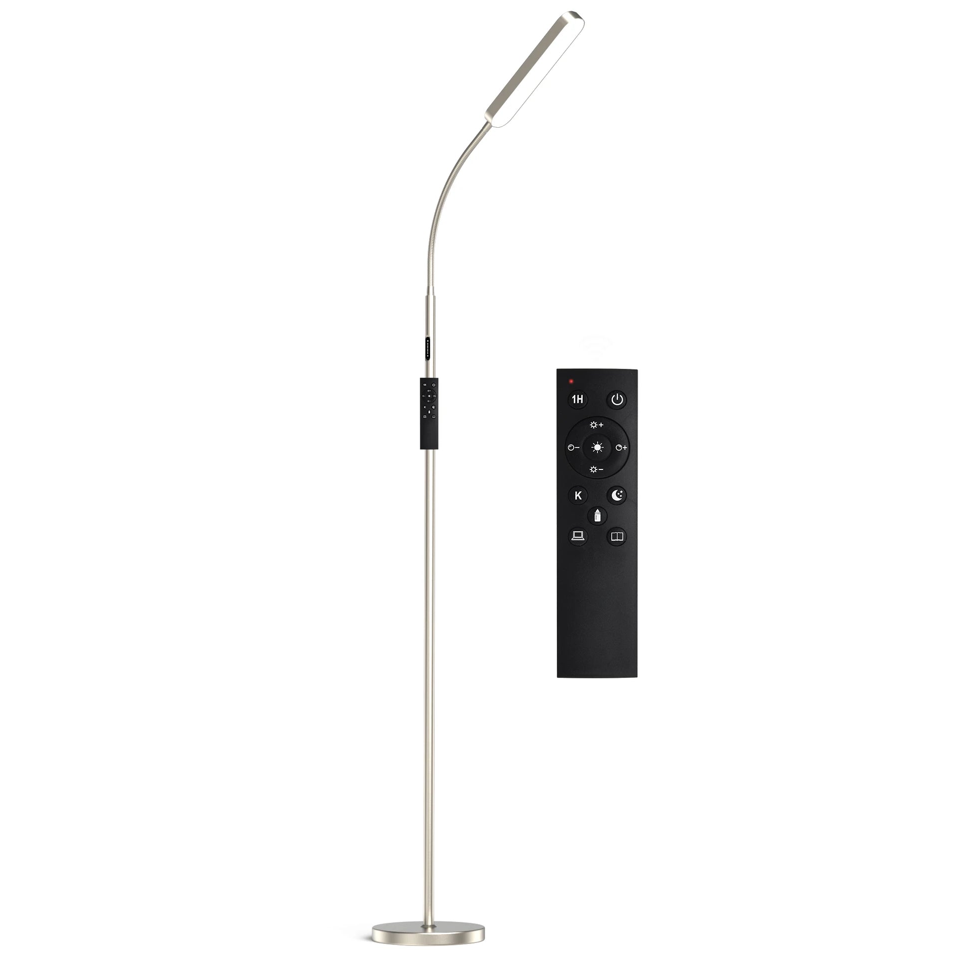 Elevate your home with a modern standing lamp designed for comfort, convenience, and style. This 68.7" LED task and reading lamp delivers soft, flicker-free illumination with adjustable brightness and color temperature—perfect for late-night reading, focused tasks, or warm ambient lighting. With touch and remote controls, a flexible gooseneck, and an easy-to-assemble design, it offers both practicality and contemporary elegance for any space.