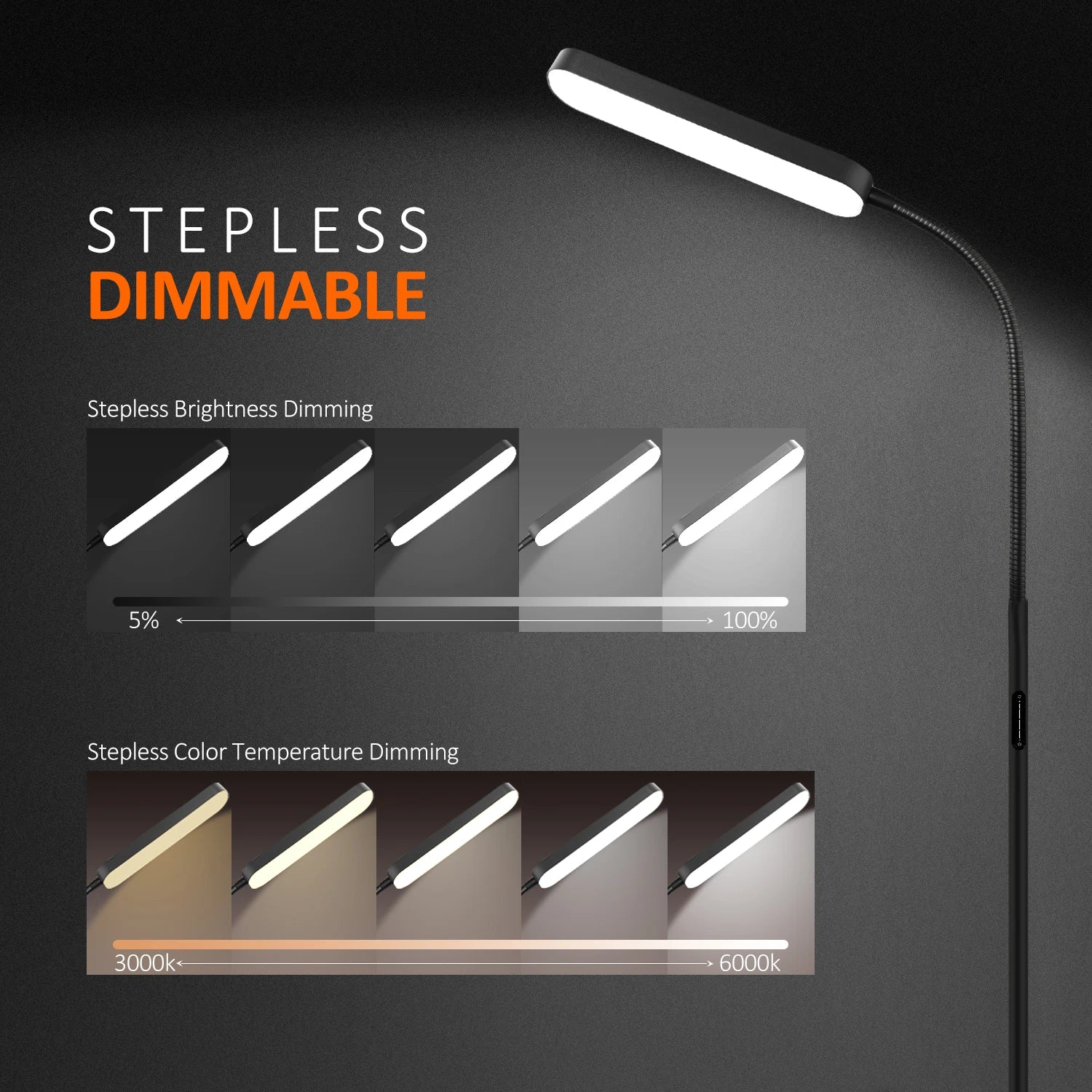 A 360° adjustable gooseneck allows you to direct light exactly where you need it, ideal for reading corners, workspaces, or general room lighting. -