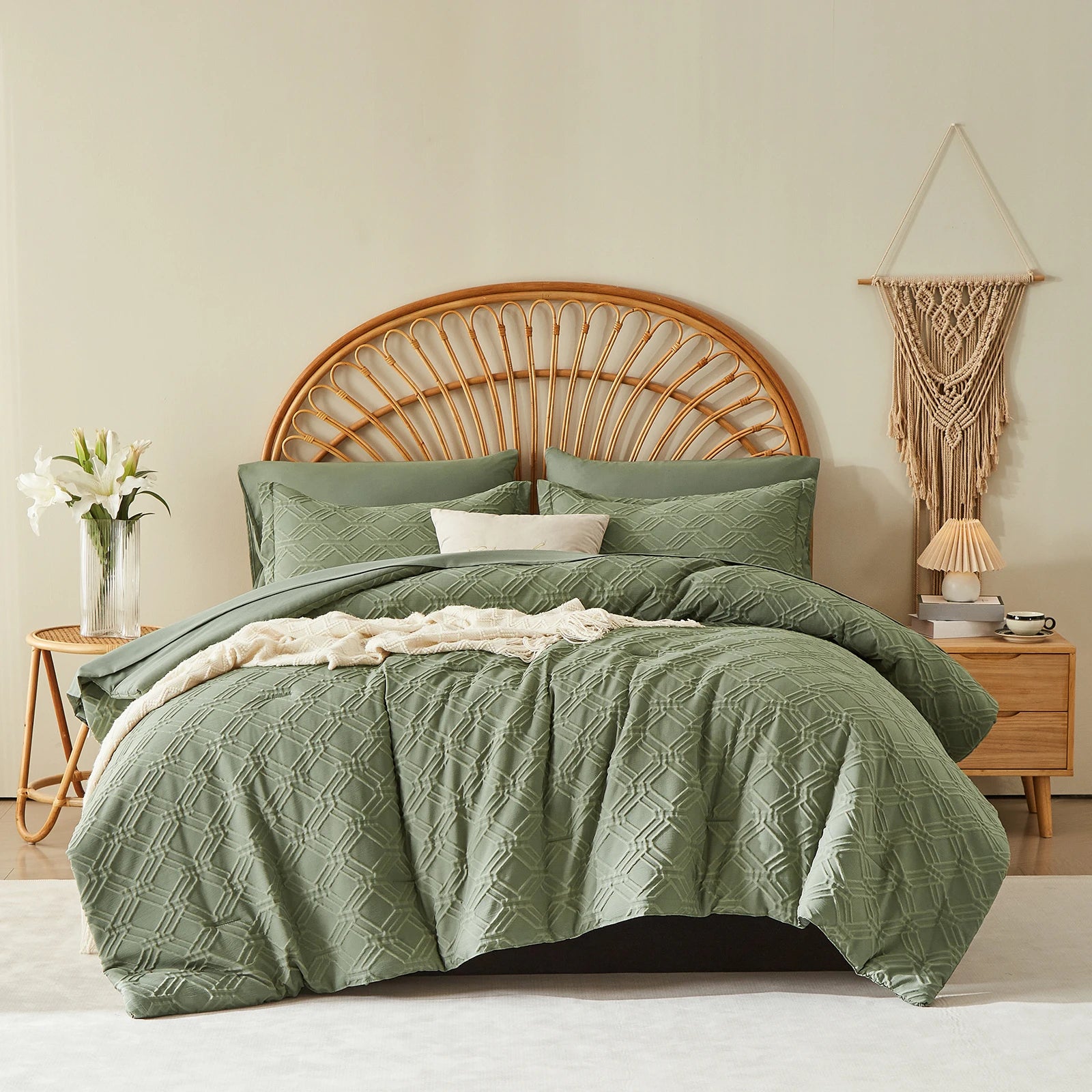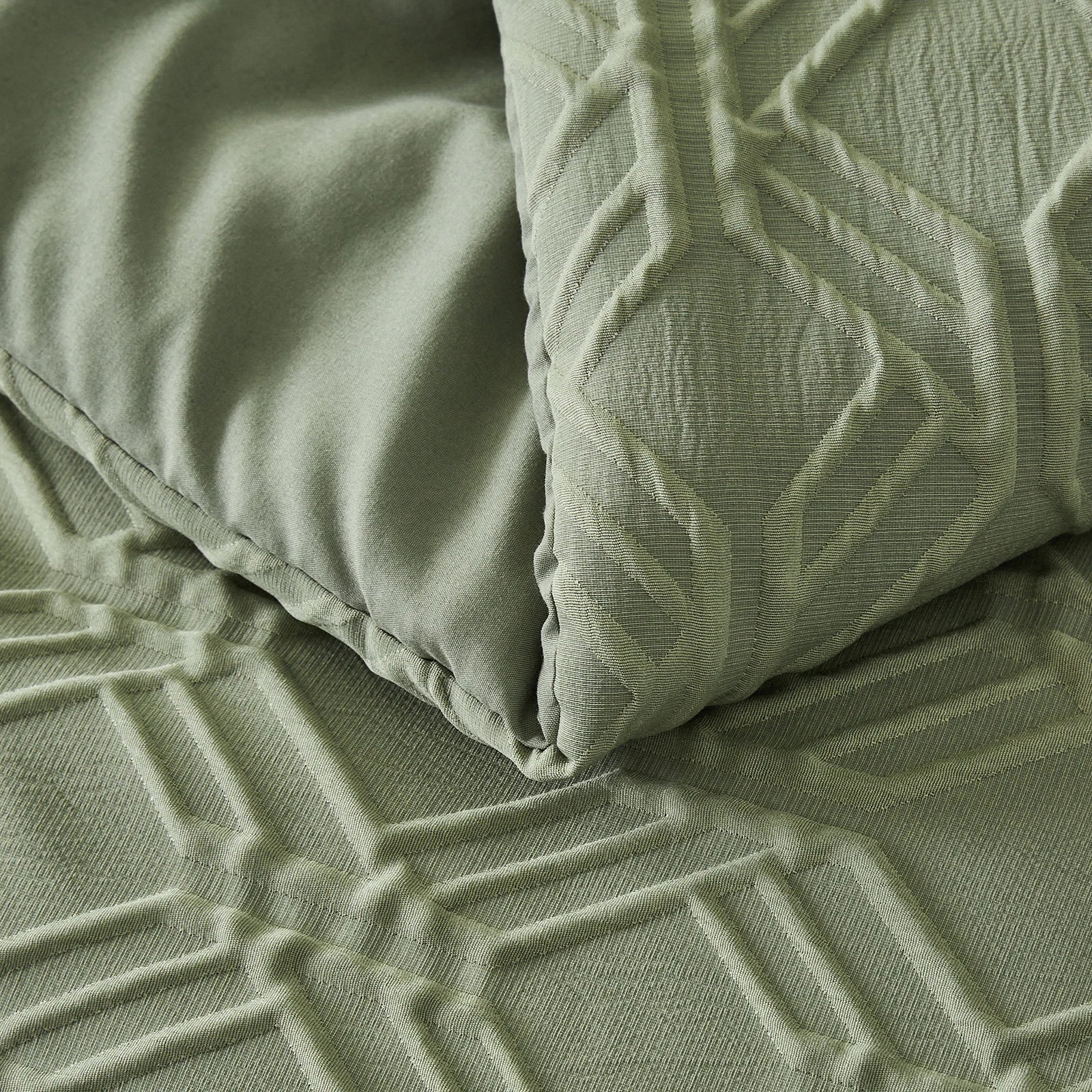 Elevate your bedroom with this premium 7-piece comforter set, beautifully embossed with a modern diamond pattern. Crafted from ultra-soft microfiber, it offers lasting comfort, breathability, and effortless elegance for every season. The durable quilted design keeps filling evenly distributed for a smooth, plush feel wash after wash.
