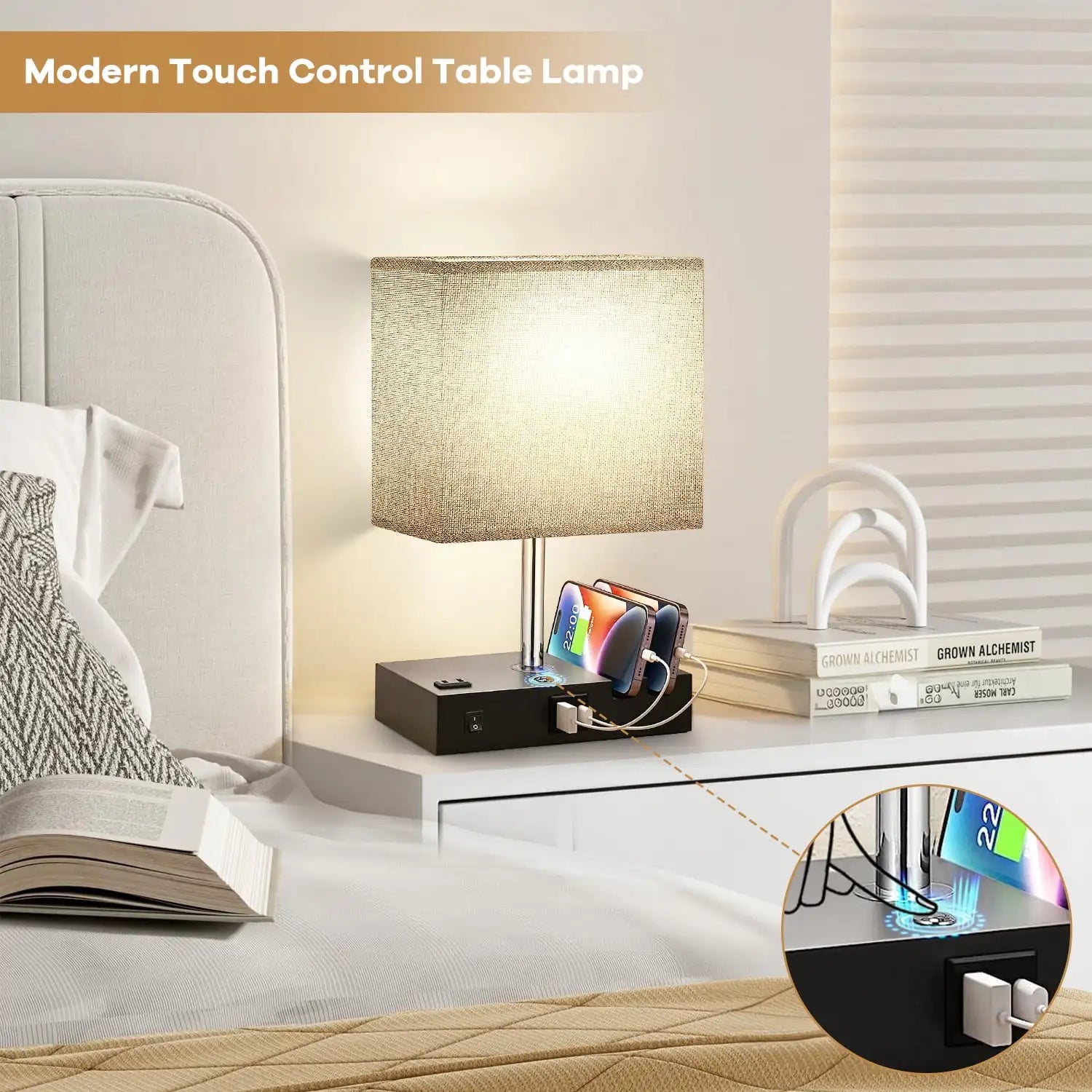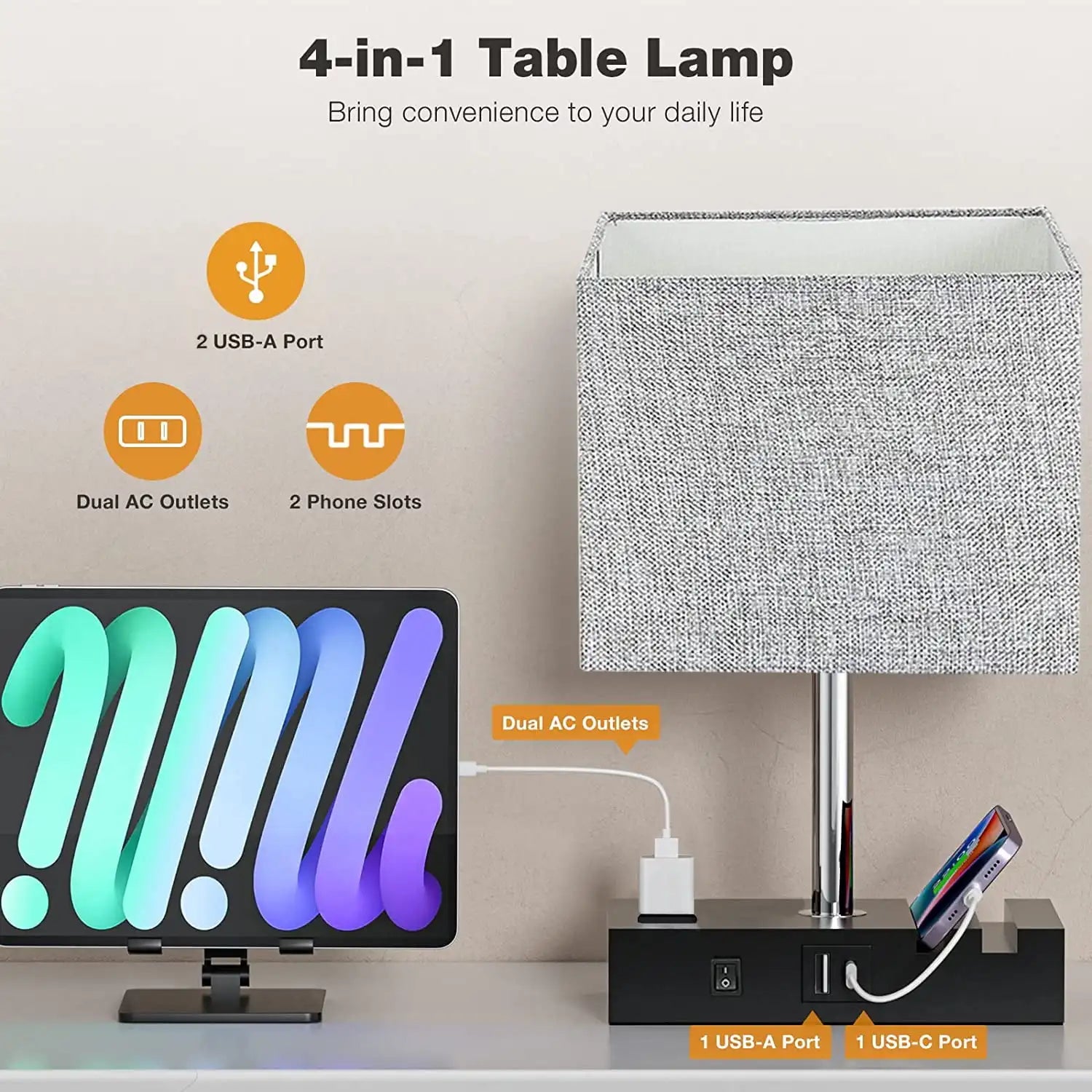 - 1 × Bedside Table Lamp with USB & AC Outlet