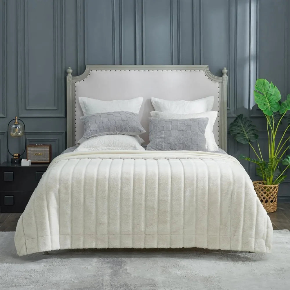 Beige Faux Fur Throw Blanket – Plush, Warm, and Stylish, 90x90 Inches