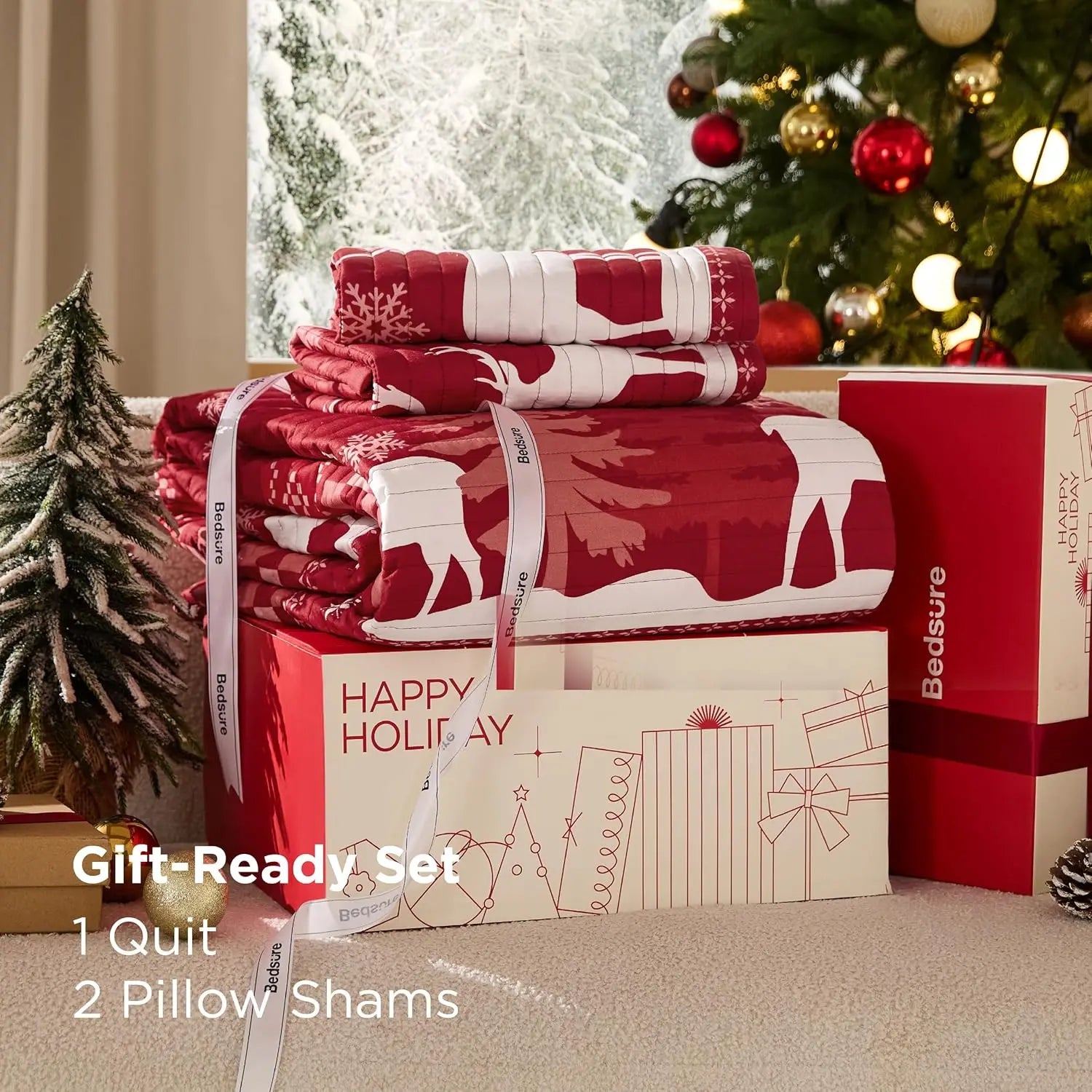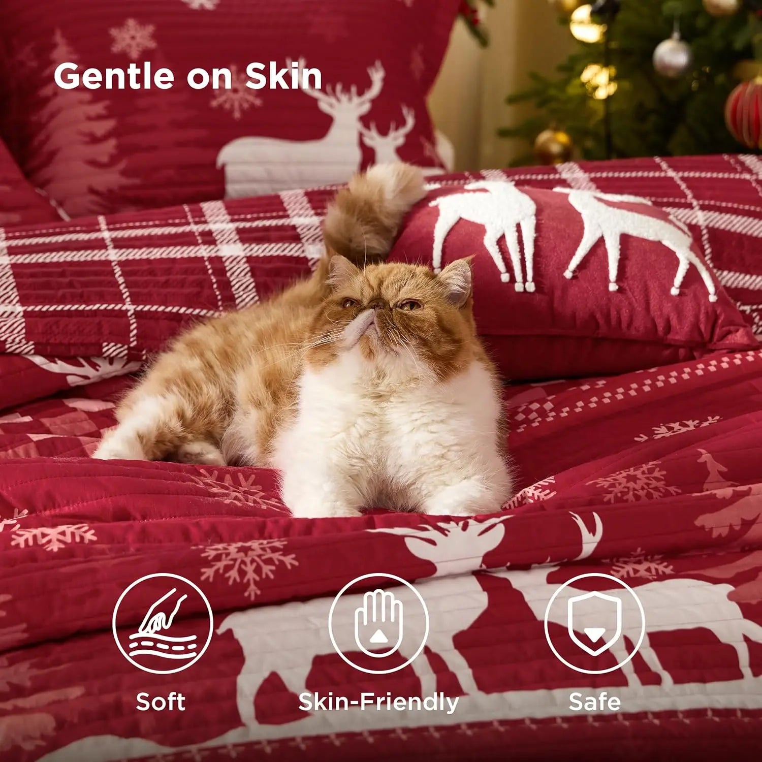 Christmas Quilt Bedding Set – Red, King Size, Reversible