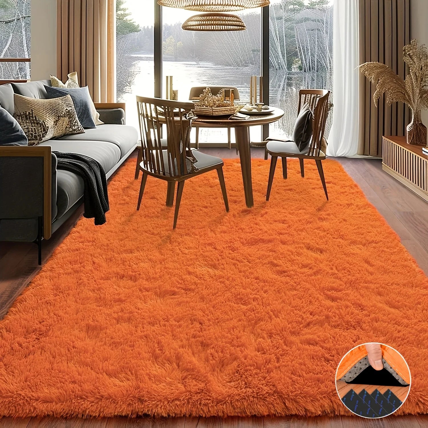 Orange Soft Shag Rug Luxury Plush Non-Slip Carpet with 4 Stickers