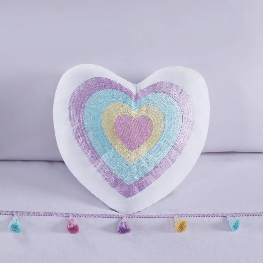 Tassel Comforter Set with Heart Shaped Throw Pillow Full Queen